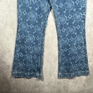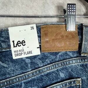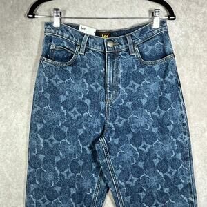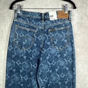 Lee Drop Flare Jeans Women 26 Blue Floral Medium Wash Denim Mid Rise Stretch NEW