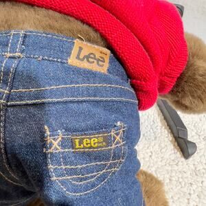 Lee Dungarees Jeans Happy Holidays Teddy Bear 12" x 10" Red Sweater Plush Soft