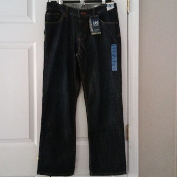 Lee Dungarees Relaxed Straight Sure to Fit Adjustable Waistband Dark Wash Sz 16