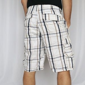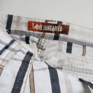 Mens Lee Dungree cargo shorts white plaid stripe. Used in good condition. Size 32. offers welcomed.