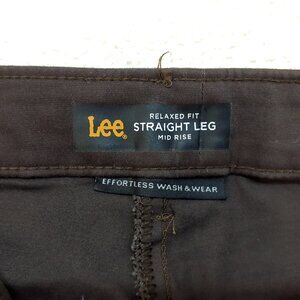 Lee Effortless Wash & Wear Pants 10 Short Relaxed Fit Straight Leg Dk Brown NWT