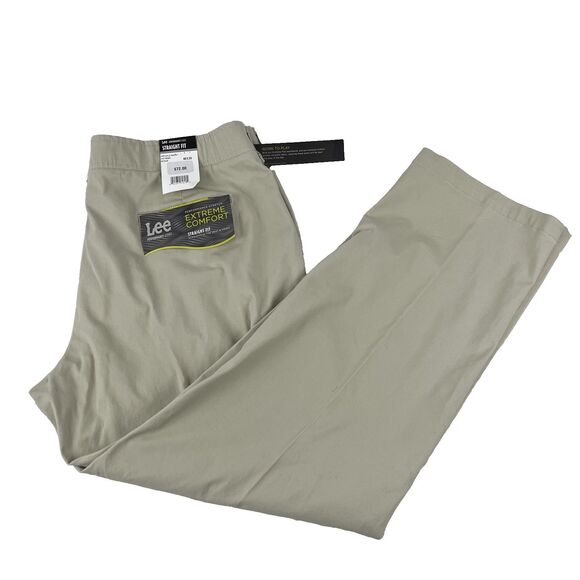 Lee Extreme Comfort Pants Mens 40x30 Light Khaki Stretch Chino Flat Front NWT