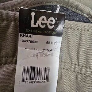 Brand new with tags men's Lee Extreme Motion relaxed taper pants. Fabric is cotton/polyester blend and color is khaki. Size is big and tall 60x28.