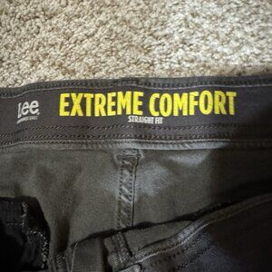 Experience all-day comfort and style with these Lee Extreme Comfort Straight Fit Pants in a versatile charcoal-gray tone. Made from a soft cotton-spandex blend, they feature a flexible waistband for added mobility, reinforced belt loops, and multiple utility pockets – including a zip side pocket perfect for secure storage. Ideal for work, travel, or everyday wear. Size 40 x 29, lightly worn with no flaws. Clean and ready to ship.