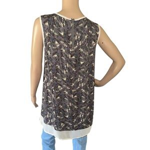 Lee Feather Print Sleeveless Blouse with Back Zip Size Large