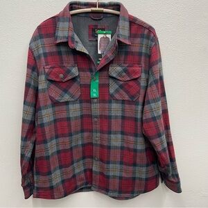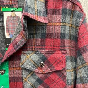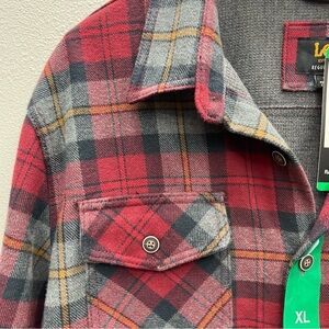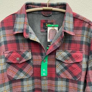 Lee Flannel Shirt Jacket Shacket Bonded With Thermal Lining. Size XL. Brawny flannel outer shell with double button/flap pockets. Double side pockets. Lined for warmth. New With Tags.