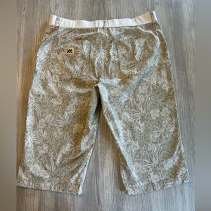 Lee Flex-To-Go Capri Skimmer Women's Size 16 Medium Ecru Floral Pants Comfy EUC.