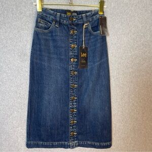 Lee High Rise Button Kansas Blue Dark Wash Denim Midi Skirt