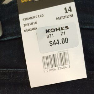 Lee Relaxed Fit Straight Leg Mid Rise Jeans, 14 Medium, Niagaria, New w/Tags