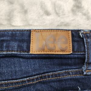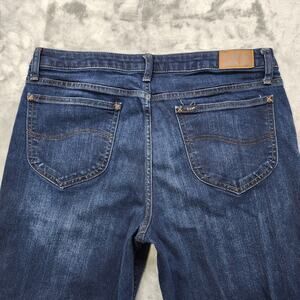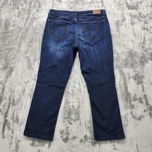 Lee Jeans Womens 14P PETITE Blue Mid Rise Straight Leg Regular Stretch Casual Dark Wash