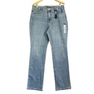 Lee Jeans Women's 16 Long Blue Relaxed Fit Straight High Rise Denim Stretch NEW