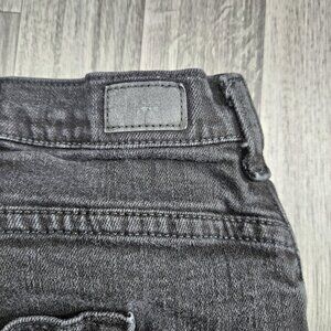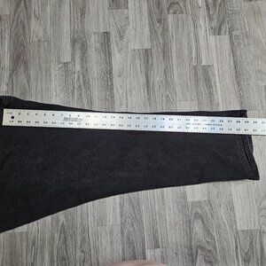 Style: Womens relaxed fit straight leg jeans in a washed black/dark gray denim.