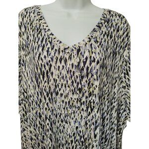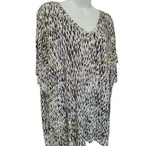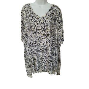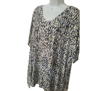 Lee Knit Top Womens Size 3X Short Sleeve V Neck Abstract Print Stretch