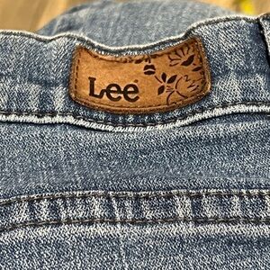 Pre-loved, Lee lean bootcut at the waist jeans.