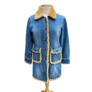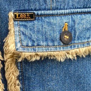 Lee Longline Faux Fur Denim Jean Jacket Cowgirl Western Fall Vintage 90s Faded-M