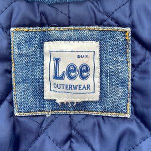 Lee Longline Faux Fur Collar & Trim Quilted Liner 90s Faded Utility Denim Jean Jacket. Please note this jacket has no size tag. Size determined by comparing measurements to a standard sizing chart. Please check measurements before purchase.