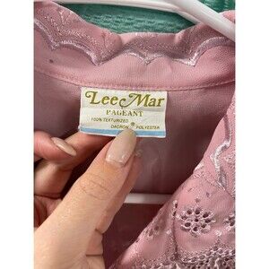 This stunning Lee Mar vintage pink long sleeve button-up top in size large is a perfect addition to any wardrobe. With its classic button-up design, it offers a timeless style that pairs well with a variety of outfits. Made from high-quality fabric, this top is both comfortable and stylish, ideal for casual and semi-formal occasions. The soft pink color adds a feminine touch, making it versatile for layering or wearing on its own. Don't miss out on this unique vintage piece!