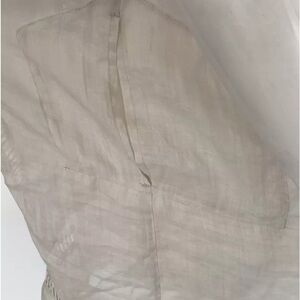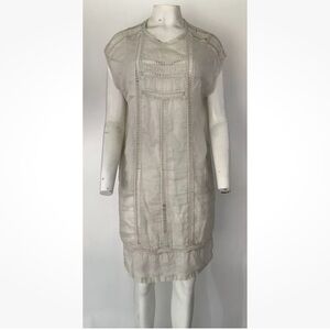 Lee Mathews Sz 4 US 100% Linen Shift Dress Beige Casual Sheer Crochet Detail