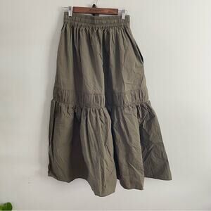 Lee Mathews | Women’s Annie Skirt Olive Green Juniper Pull-On Drawstring Tiered