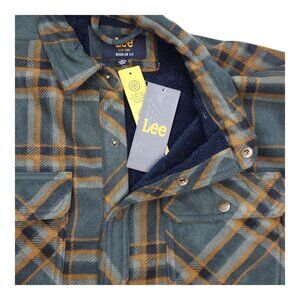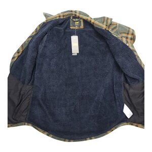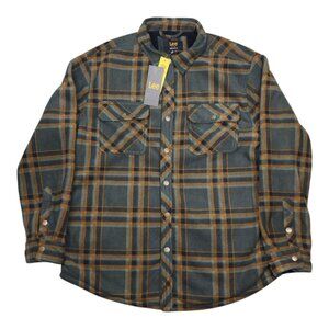Lee Men XL Plaid Fleece Shirt Jacket Shacket Sherpa Lining Regular Dark Olive