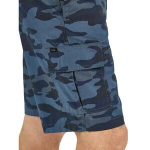 The Lee Men's Hybrid Cargo Short with Flex Motion Waistband in size 46 offers a comfortable and practical option for casual wear. Made with a cargo fabric and featuring a mid-rise and flat front design, these shorts have a zip closure and multiple pockets for functionality. The camo blue color and outdoor theme make it a stylish choice for the summer and spring seasons. With a cotton material and machine washable care instructions, these shorts combine durability with a relaxed fit for everyday wear.