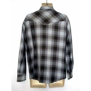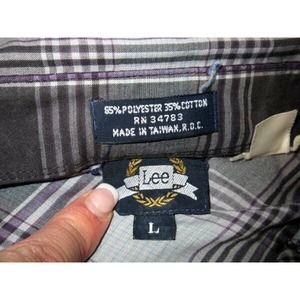 Lee Men's LS Western Pearl Snap Shirt Gray Black Purple Plaid Check Large
