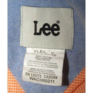 Lee Men's Orange Peach Shirt Size XXL Long Sleeve Button Down Micro Check Pocket