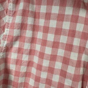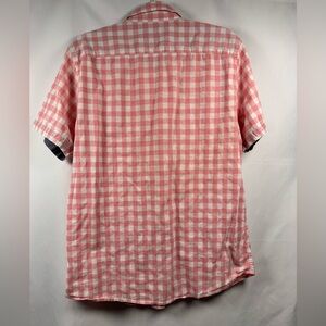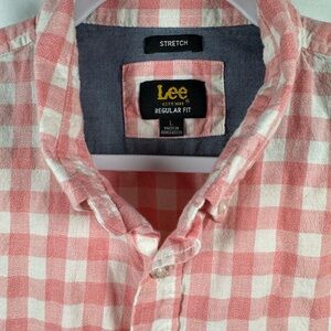 This Lee Men’s Checkered Short Sleeve Button Up Shirt is used but in great used condition. It is pink and white checkered print and size large. See pictures.