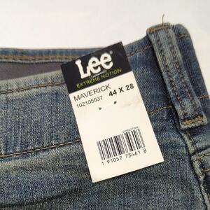 Classic relaxed fit. Durable denim fabric. Ideal for everyday wear. these are brand new Lee extreme motion Maverick denim pants size 44x28. they are relaxed in the seat and a thigh with a tapered leg. they have the performance stretch extreme flex waistband for the big and tall. these are very very nice quality. heavy duty well made brand new with tags