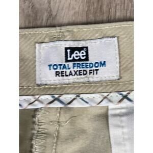 Lee Men's Relaxed Fit Khaki Pants Beige Size 36 Pleated Front Short 27 Inseam