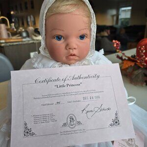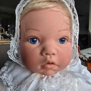 New in the box with the certificate and Bible. Blonde hair, blue eyes.