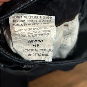 The cotton poly spandex blend of these jeans make them soft and comfortable. Size 16, and they do run a bit small. Very good condition.