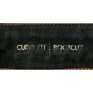 These jeans feature a flattering curvy fit with a classic bootcut silhouette. The medium-dark wash adds versatility, suitable for casual or professional settings.