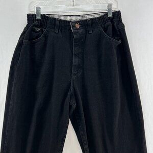 Lee Mom Jeans Womens 12P High Rise Tapered Elastic Waist Denim Relaxed Fit Black