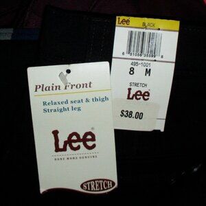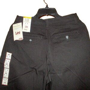 Lee black cotton blend pants with custom fit waistband that stretches for a hidden extra inch. Plain front, classic fit. Size 8 medium, waist is 30", hip is 42", rise is 12", length is 42", inseam is 29". New with tag.