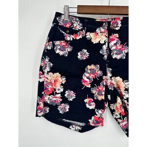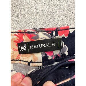 Lee Natural Fit Shorts Women 6 Medium Navy Floral 6in Inseam Pockets Stretch