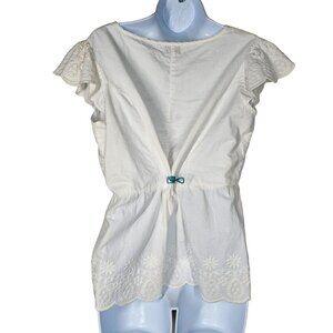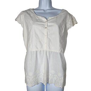 Lee Peasant Peplum Top Cap Sleeve Embroidered Detail Front Button Women White L