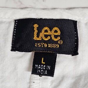 Tags: Lee Peasant Top, Peplum Top, Women's Top, Cap Sleeve Top, Embroidered Top, Front Button Top, White Top, Size L Top, Casual Top, Semi-formal Top, Lee Brand Top, Versatile Top, Quality Top