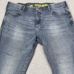 Lee Performance Mens Blue Denim Jeans Extreme Motion Straight Tapered Leg 40X30