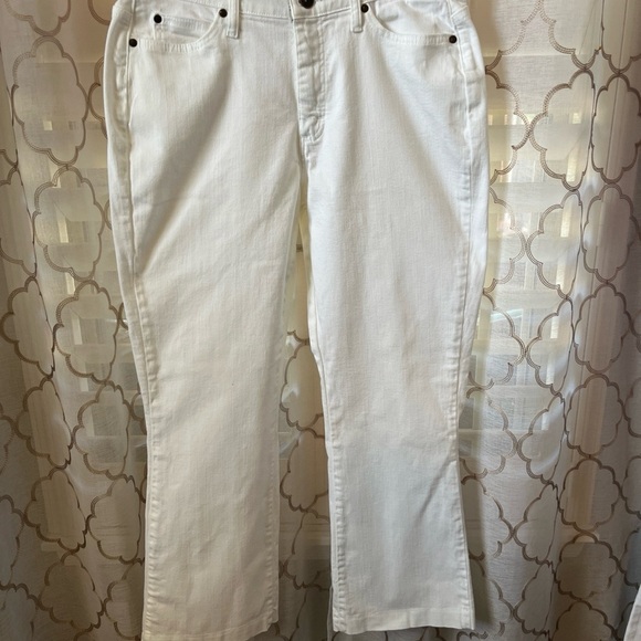Lee Platinum Label Women's White Bootleg Denim Jeans. Comfort Waistband. Cotton and spandex stretch. Size 12 short