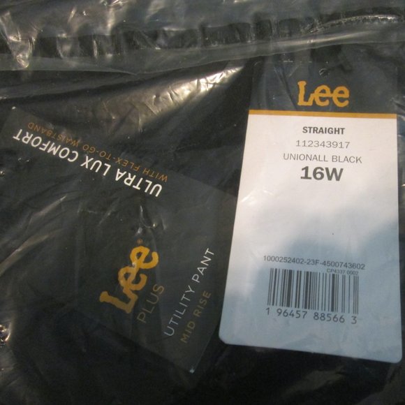Lee Plus Straight 16W Long Utility Pant Mid Rise Unionall Black unopened