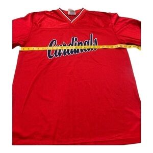 Vibrant red jersey with 'Cardinals' text. Comfortable fit. Perfect for sports fans.