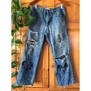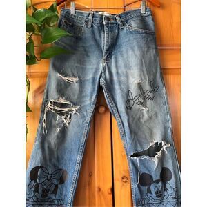 Lee Regular Fit Hand Painted Graffiti Vulgar Mickey and Minnie Jeans Size 32