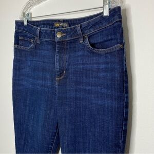 Lee Regular Fit Straight Leg Mid Rise Dark Wash Jeans. Classic five pocket styling with great stretch. Please note, these are petite length jeans.