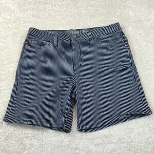 Lee Regular fit mid rise navy and white pinstripe jean shorts, size 34