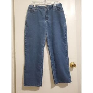 Upgrade your denim collection with these Lee Relaxed Fit At The Waist Straight Leg Jeans in women's size 12 Short. The blue jeans are made of a comfortable blend of polyester, spandex, and cotton with medium fabric wash. The high-rise waist features belt loops and a zip/button closure, while the 5-pocket design adds extra storage space.