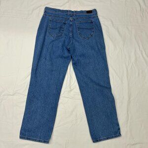 Classic blue denim jeans from Lee, featuring a relaxed fit and straight leg. These comfortable, everyday jeans are a size 10 Short.