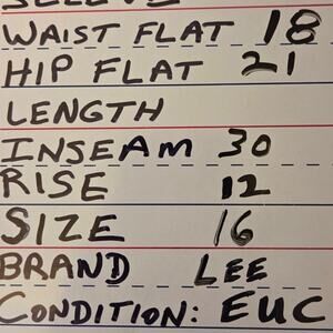 Major retailers charge $24 and up. Dark wash, relaxed fit at the waist, straight leg. Excellent preowned condition! Garment measurements in photos.