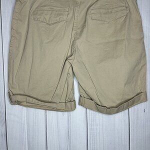 Lee Relaxed Fit Mid Rise Khaki Shorts Sz 18 (40x9) Roll Tab Hem Elastic Waist