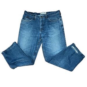 Lee Relaxed Fit Straight Leg Distressed Denim Blue Jeans Size 38x29